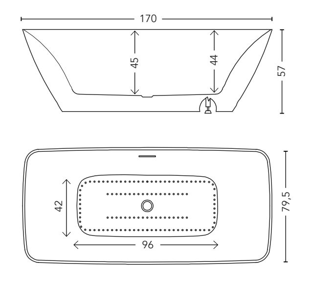 Medidas- Banheira Axis U.SPA Air Massage: 170x79,5x57cm
